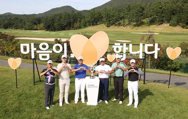 [서울=뉴시스] 고승민 기자 = 28일 경기 여주 페럼골프클럽에서 열린 현대해상 최경주 인비테이셔널 포토콜 행사에서 조민규(왼쪽부터), 김비오, 함정우, 최경주, 서요섭, 배용준이 포즈를 취하고 있다. (사진=KPGA 제공) 2022.09.28. photo@newsis.com *재판매 및 DB 금지