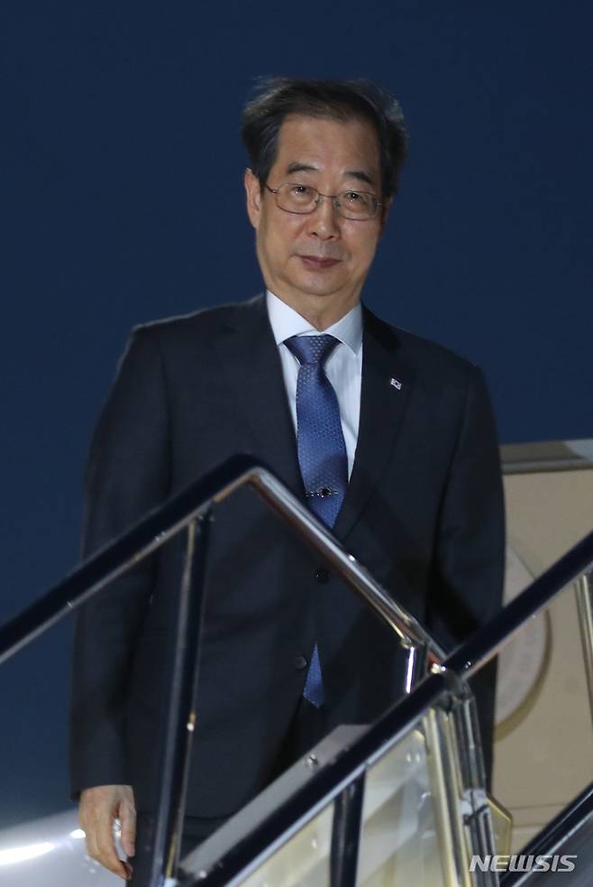 [도쿄=뉴시스] 김명원 기자 = 고 아베 신조 전 일본 총리의 조문사절단 단장인 한덕수 국무총리가 28일 방일 일정을 마치고 일본 도쿄 하네다 공항에 도착해 출국하고 있다. 2022.09.28. kmx1105@newsis.com