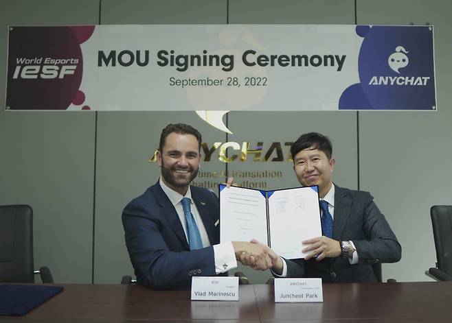 실시간 인공지능(AI) 번역 채팅 플랫폼 회사 애니챗은 129개의 회원국을 보유한 국제이스포츠연맹과 세계 이스포츠 산업 발전을 위한 업무협약(MOU)을 체결했다고 28일 밝혔다.