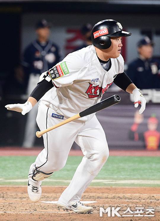 4회말 1사 1루에서 kt 김준태가 중전안타를 치고 있다.