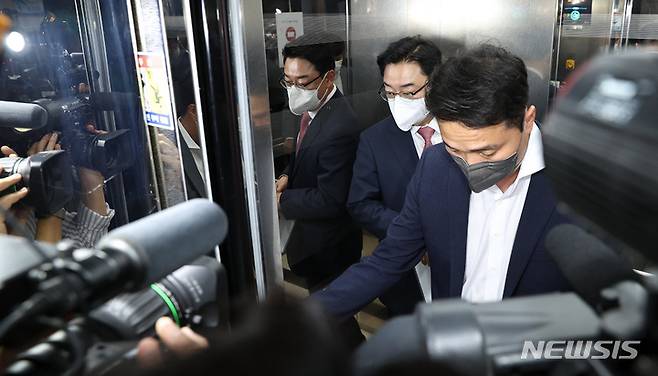 [서울=뉴시스] 최진석 기자 = '수해 현장 실언 논란'으로 물의를 빚은 김성원 국민의힘 의원이 28일 오후 서울 여의도 국회에서 열린 윤리위원회에 출석해 소명을 마친 뒤 이동하고 있다. (공동취재사진) 2022.09.28. photo@newsis.com