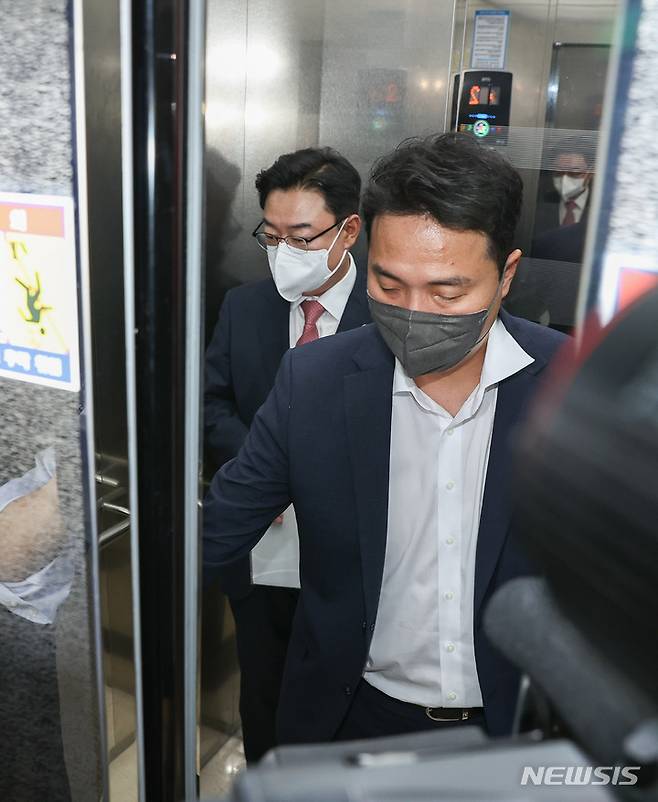 [서울=뉴시스] 최진석 기자 = '수해 현장 실언 논란'으로 물의를 빚은 김성원 국민의힘 의원이 28일 오후 서울 여의도 국회에서 열린 윤리위원회에 출석해 소명을 마친 뒤 이동하고 있다. (공동취재사진) 2022.09.28. photo@newsis.com