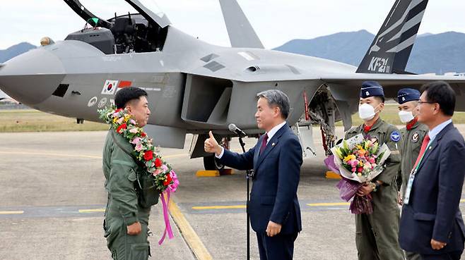 방위사업청은 경남 사천 공군 제3훈련비행단에서 KF-21 최초비행 성공 축하 행사를 열고 KF-21 이륙 장면을 언론 등 일반에 공식적으로 최초 공개했습니다.