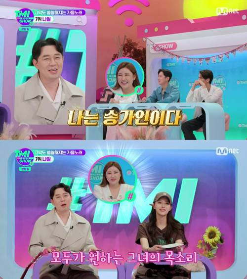 송가인, 한해, 배진영은 28일 오후 방송된 케이블채널 Mnet 'TMI NEWS SHOW'에 객원기자로 출연했다.