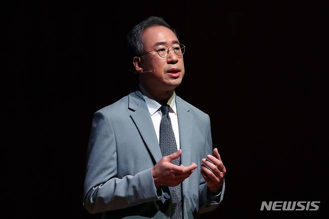 [서울=뉴시스] 박진희 기자 = 장형준 예술의전당 사장이 29일 서울 서초구 예술의전당 음악당 IBK챔버홀에서 취임 기자간담회를 하고 있다. 2022.09.29. pak7130@newsis.com