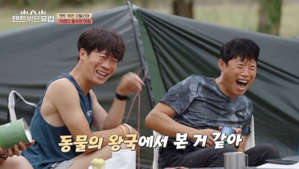 물론 예능 프로그램이니 재미 요소가 전혀 없으면 곤란해진다. 그런 점에서 보면 끝없이 아재개그를 던지는 유해진이나 새소리 같은 의외의 재능을 보여주는 진선규, 그리고 이들이 척척 맞춰가는 톰과 제리 같은 기분 좋은 티키타카는 <텐트 밖은 유럽>이 여행을 소재로 하는 교양 프로그램이 되지 않게 해준 중요한 요인이 아닐 수 없다.