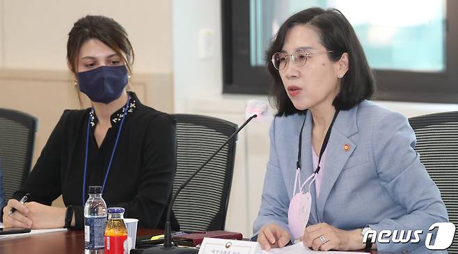 (서울=뉴스1) 김명섭 기자 = 김현숙 여성가족부 장관이 29일 오후 서울 종로구 정부서울청사에서 열린 2022 다문화가족 참여회의에서 모두 발언을 하고 있다. 2022.9.29/뉴스1