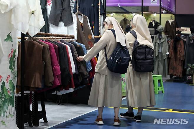 [서울=뉴시스] 박진희 기자 = 서울국제불교박람회 개막한 29일 서울 강남구 서울무역전시컨벤션센터(SETEC)를 찾은 수녀들이 전시장을 돌아보고 있다. 2022.09.29. pak7130@newsis.com