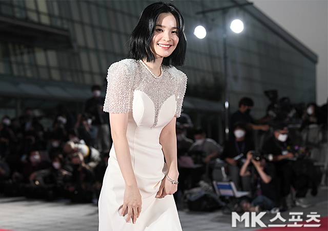 배우 전미도가 레드카펫을 밟고 있다.