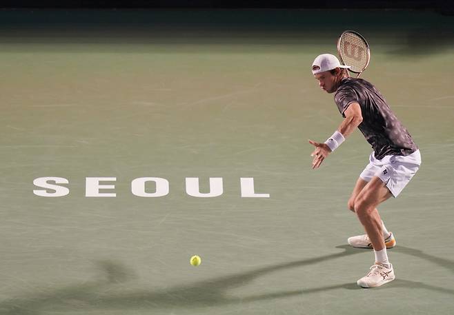 [서울=뉴시스] 이영환 기자 = 29일 오후 서울 송파구 올림픽공원 테니스장에서 열린 ATP250 유진투자증권 코리아오픈에서 니콜라스 제리가 캐스퍼 루드와 경기를 펼치고 있다. (사진=ATP 코리아오픈 테니스대회 제공) 2022.09.29. photo@newsis.com *재판매 및 DB 금지