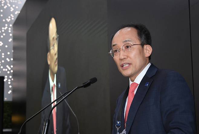 [서울=뉴시스] 이영환 기자 = 제55차 아시아개발은행(ADB) 연차총회 참석차 필리핀 마닐라를 방문중인 추경호 부총리 겸 기획재정부 장관이 29일(현지시간) ADB에서 열린 차기개최국 대한민국 홍보행사에 참석해 의장으로서 환영사를 하고 있다. (사진=기획재정부 제공) 2022.09.29. photo@newsis.com *재판매 및 DB 금지