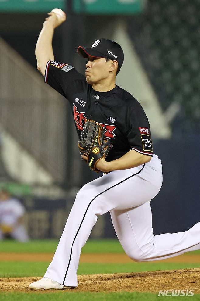[서울=뉴시스] 조성우 기자 = 29일 오후 서울 송파구 잠실야구장에서 열린 2022 KBO리그 KT 위즈와 LG 트윈스의 경기, LG 9회말 공격에 마운드에 오른 KT 투수 김재윤이 역투하고 있다. 2022.09.29. xconfind@newsis.com
