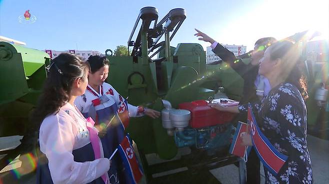 광장과 도로에 열을 맞춰 선 장비들, 김정은 총비서 지시로 제작한 새 농기계 4종류, 5500대를 전시해 놓은 겁니다.