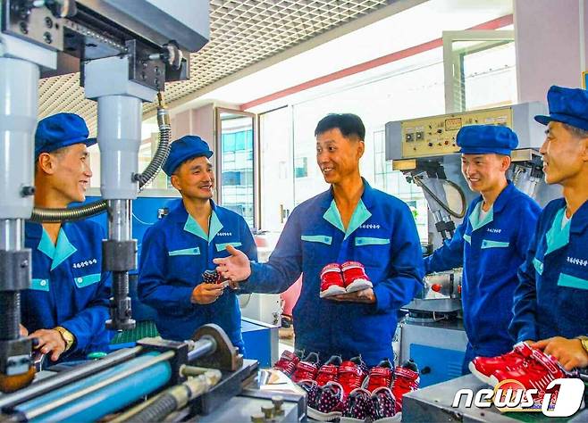 (평양 노동신문=뉴스1) = 북한 노동당 기관지 노동신문은 30일 "당과 혁명, 인민에게 진짜 필요한 일꾼으로 살고 있는가"라며 일꾼들에게 당 결정 관철에 더욱 분발할 것을 독려했다. 사진은 류원신발공장 노동자들로 "생산자 대중을 집단적 혁신으로 힘있게 불러일으키고 있다"라고 신문은 보도했다.