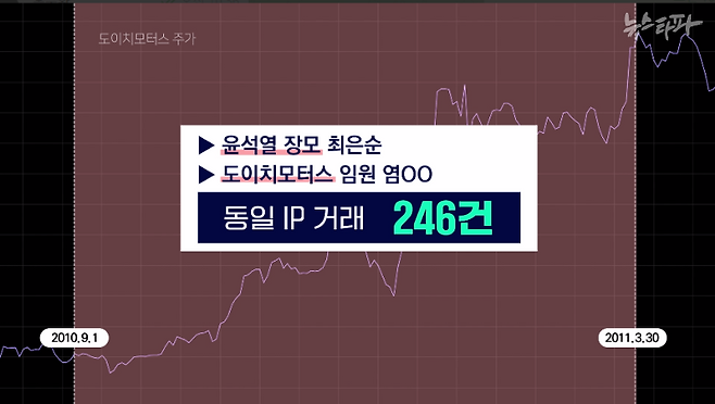 최은순과 도이치모터스 임원, 동일 IP에서 246차례 거래