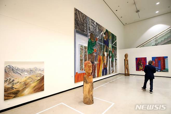 [서울=뉴시스] 박진희 기자 = 아이프앤코와 호리아트스페이스가 공동 주최한 오픈 스튜디오형 아트페스트 '그림의 탄생' 전시가 열린 30일 서울 서초구 한가람미술관에 국내 작가 12인의 작품이 전시되고 있다. 이번 전시는 이건용, 서용선, 오원배, 민병훈, 김남표, 변웅필, 윤종석, 송필, 강준영, 박경률, 박효빈, 유현경 작가가 참여했다. 2022.09.30. pak7130@newsis.com