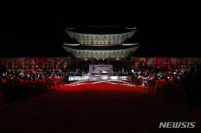 [서울=뉴시스] 최동준 기자 = 30일 서울 경복궁 홍례문 광장에서 2022 한국문화축제 전야제 공연이 열리고 있다. 2022.09.30. photocdj@newsis.com