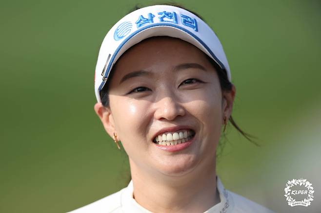 [서울=뉴시스] 최동준 기자 = 한국여자프로골프 베테랑 홍란이 30일 인천 서구 베어즈베스트 청라GC에서 열린 하나금융그룹 챔피언십 2라운드에서 홀아웃하며 미소 짓고 있다. 홍란은 2라운드를 마치고 공식 은퇴식을 가졌다. (사진=KLPGA 제공) 2022.09.30. photo@newsis.com