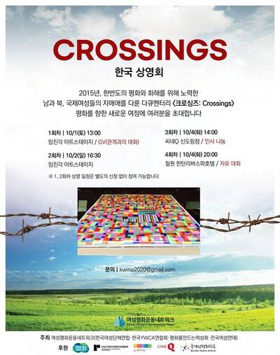 여성평화운동네트워크는 10월 1, 2일과 4일 2015년 '위민 크로스 디엠제트'(Women Cross DMZ) 캠페인을 기록한 다큐멘터리 영화 <크로싱> (Crossings)의 국내 첫 상영회를 진행한다. 크로싱>