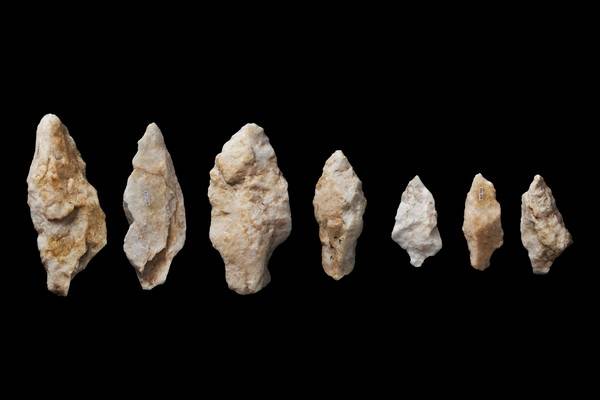 | ▲ 도내동 유적지에서 발견된 슴베형 석기. 4만~7만년 전의 구석기 4만 7000여 점이 발굴되어 우리나라 구석기 발굴의 큰 사건으로 기록되고 있다. |