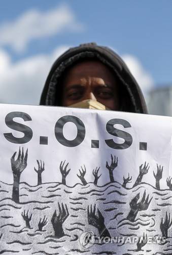 epa10217839 People take part in the 'Rights, no death' march protest to support migrants, in Brussels, Belgium, 01 October 2022. This march is to denounce the EU as being responsible as thousands of forced migrants die when trying to reach Europe or trying to cross its internal borders. EPA/JULIEN WARNAND