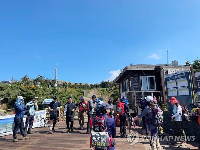 한라산 윗세오름에 오른 등산객들