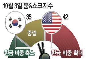 - "韓美증시서 현금비중 더 늘려야"