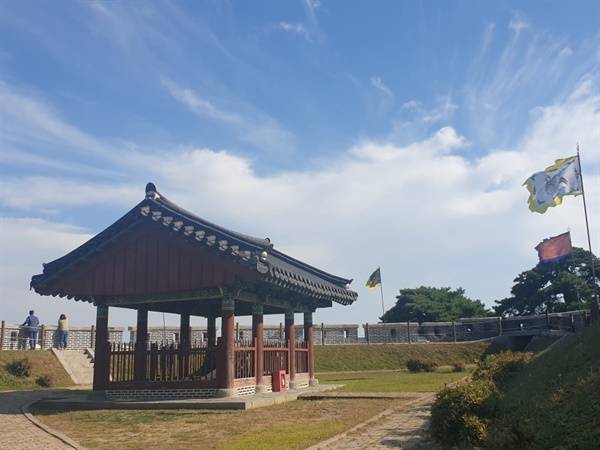 성벽 앞에 우뚝 서 있는 두 그루 소나무를 올려다봤다. 치열했던 전장의 한가운데에서 쏟아지는 포탄을 온 몸으로 받았던 소나무들이다. 그때의 흔적을 말끔히 다 씻고 소나무는 의연한 모습으로 서 있었다. 나란히 서 있는 두 그루의 소나무가 지나간 역사를 말없이 보여주는 듯했다.