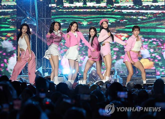 (서울=연합뉴스) 이지은 기자 = 2일 오후 서울 강남구 영동대로에서 열린 한류 콘서트 '영동대로 K-팝 콘서트'에서 그룹 위클리가 공연을 펼치고 있다. 이날 콘서트에는 싸이를 비롯해 더보이즈, 하이라이트, 청하, 위클리 등 한류스타들이 출연한다. 2022.10.2