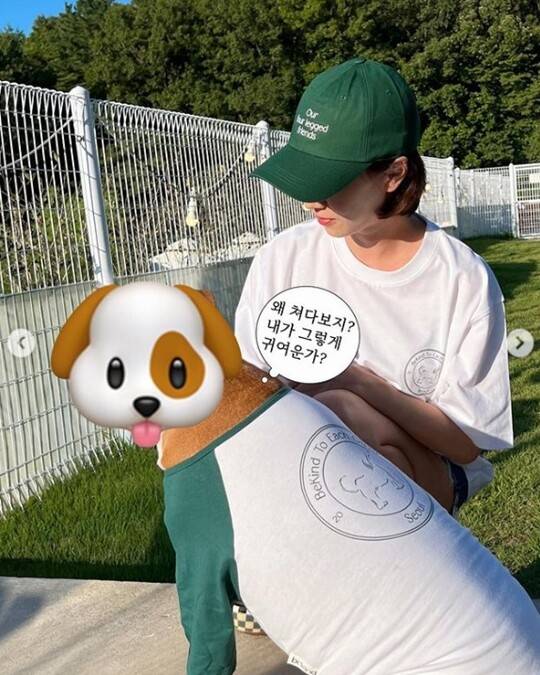 공개된 사진 속에는 송지효가 반려견과 함께 다정한 시간을 보내고 있는 모습이 담겼다. 송지효와 반려견은 커플 옷을 맞춰 입고 있어 훈훈함을 자아낸다.
