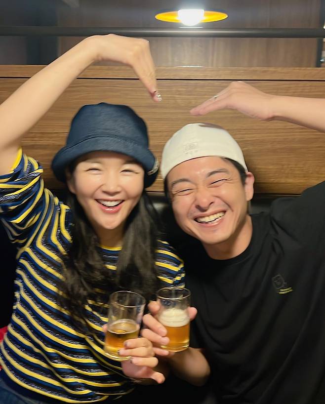 공개된 사진 속 장영란은 남편 한창, 남매와 함께 외출한 모습이다. 부부는 맥주잔을 든 채 하트 포즈를 취하며 밝게 웃고 있다.