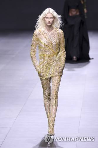 A model wears a creation for the Valentino ready-to-wear Spring/Summer 2023 fashion collection presented Sunday, Oct. 2, 2022 in Paris. (Photo by Vianney Le Caer/Invision/AP) 092722128427, 21334631,