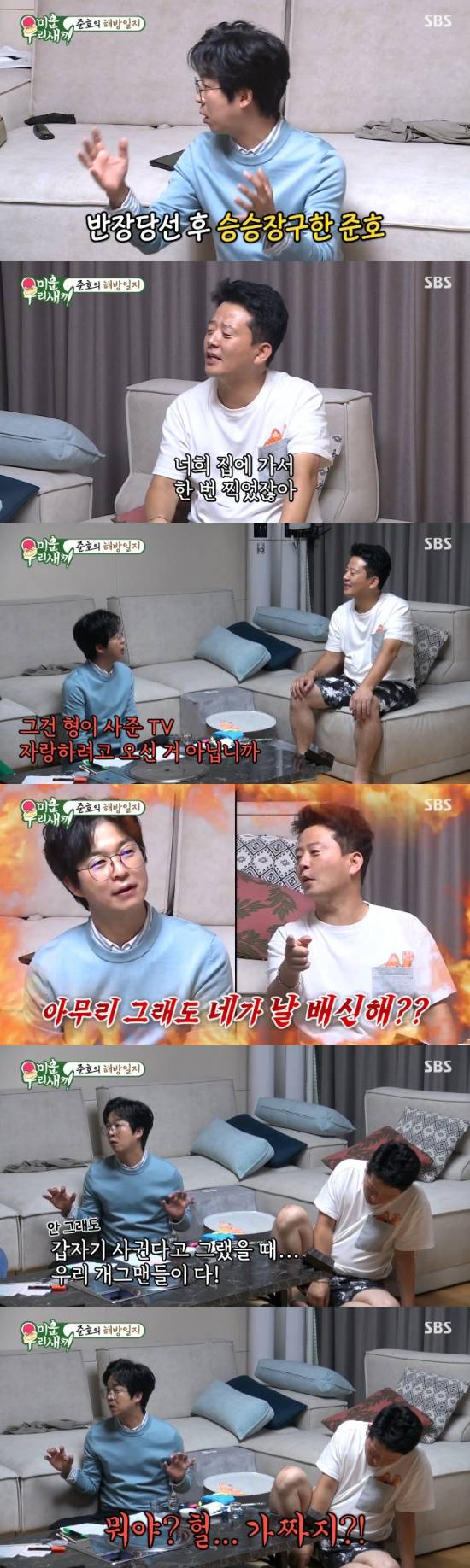김준호는 "집 가서 한 번 찍지 않았냐"라며 변명했고, 홍인규는 "그건 형이 사준 TV 자랑하려고 오신 거 아니냐"라며 못박았다.