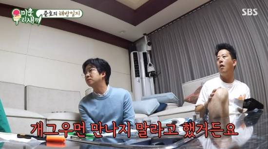 지상렬은 "지민이가 생기고 동생들을 덜 챙기는 거다"라며 거들었고, 홍인규는 "사귄다고 이야기 나왔을 때 개그맨들이 다 '가짜 뉴스지?'라고 놀랐던 게 형이 항상 개그맨들 술 사주면서 개그우먼 만나지 말라고 항상 이야기했다"라며 의아해했다.