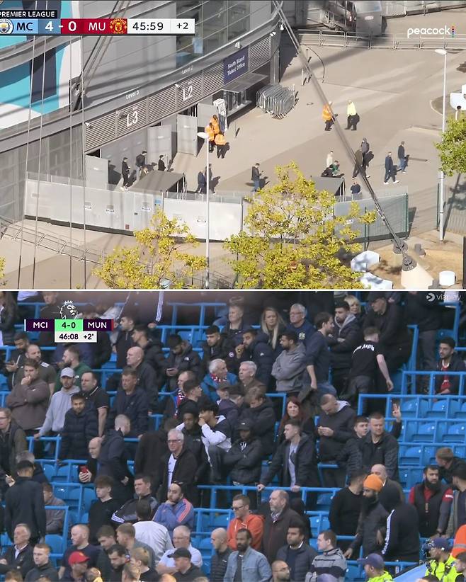 현지 중계 카메라는 경기장을 벗어나는 맨유 팬들의 모습을 보여줬다.