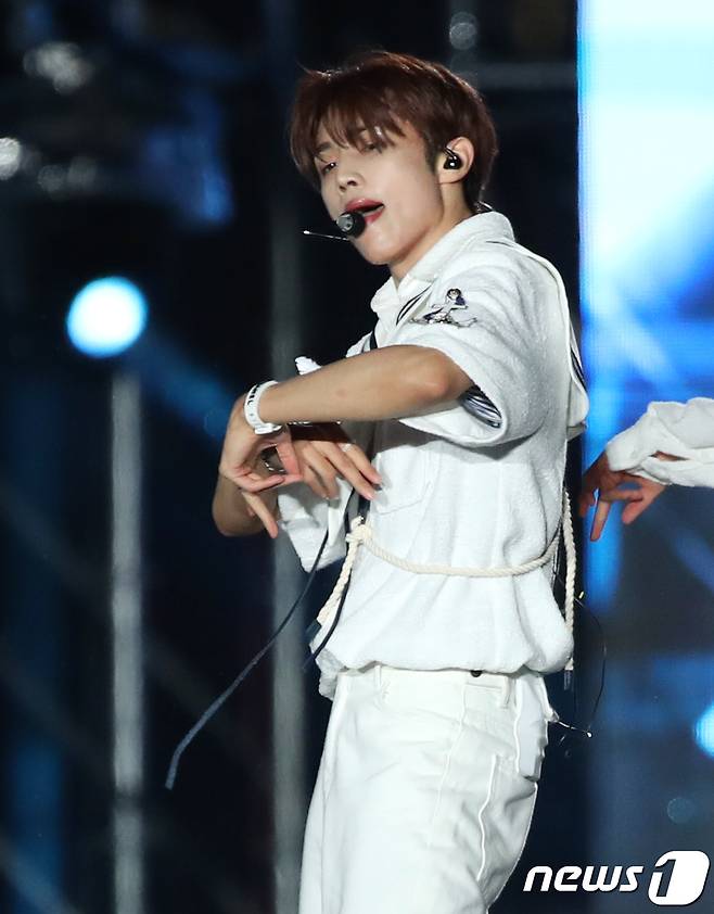 (서울=뉴스1) 권현진 기자 = 더보이즈(THE BOYZ) 선우가 2일 오후 서울 강남구 영동대로 특설무대에서 열린 한류 콘서트 ‘영동대로 K-POP 콘서트’에서 화려한 무대를 선보이고 있다. 2022.10.2/뉴스1