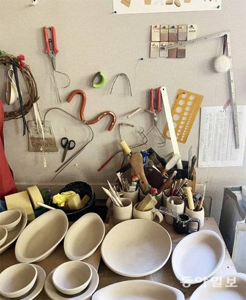 솜씨 좋은 도예 작가의 작업실을 살짝 들여다봤습니다. 곡선의 도자기 미학이 뾰족뾰족한 도구들을 통해 나왔군요.