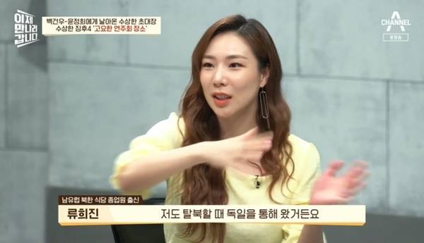 남유럽 북한 식당 종업원 출신 류희진은 "저도 탈북할 때 독일을 통해 왔다. 기차 안에 동양인이 한 명 있었다. 동양인이 북한 보위부원처럼 느껴졌다. 그 사람이 전화만 안 했으면 기차에서 뛰어내릴 뻔 했다"고 털어놨다.