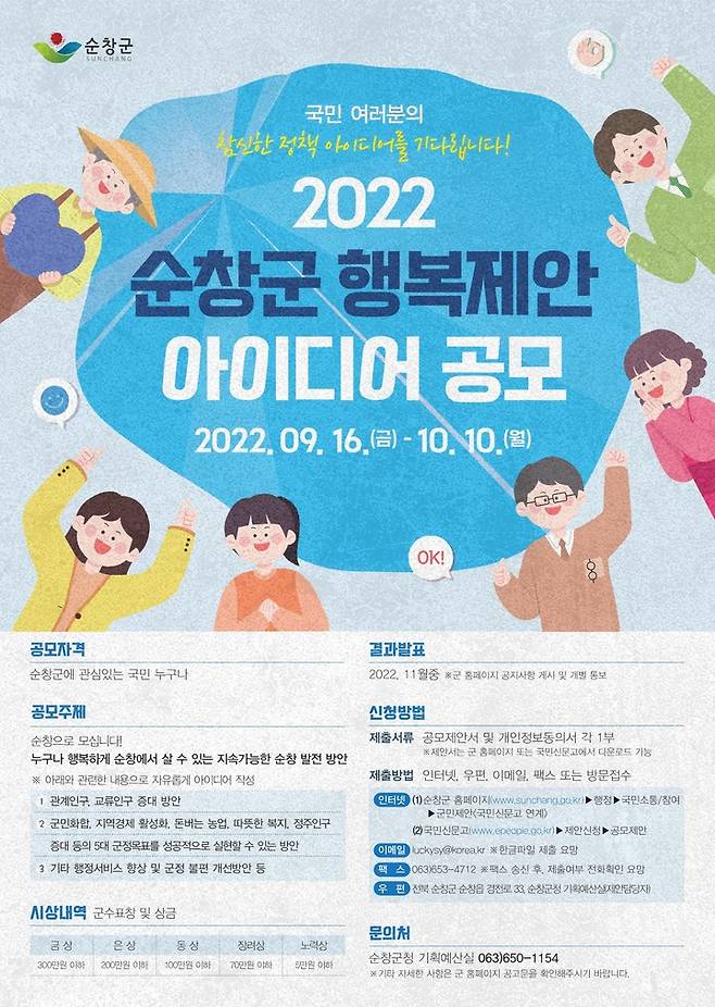 순창군, 민선 8기 정책 적극 반영.. '행복제안' 정책공모