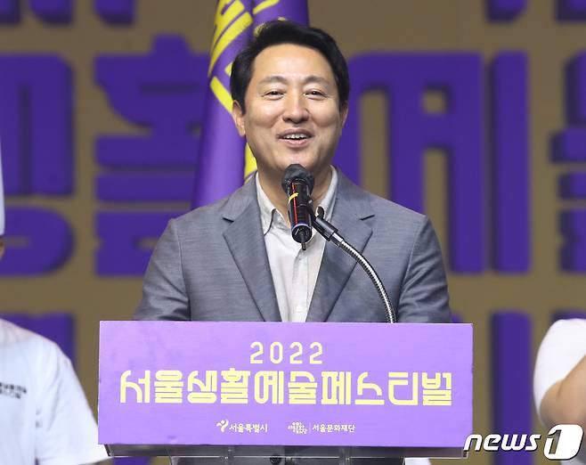 (서울=뉴스1) 송원영 기자 = 오세훈 서울시장이 3일 서울 중구 장충체육관에서 열린 제1회 서울생활예술페스티벌 개막식에서 환영사를 하고 있다. 2022.10.3/뉴스1