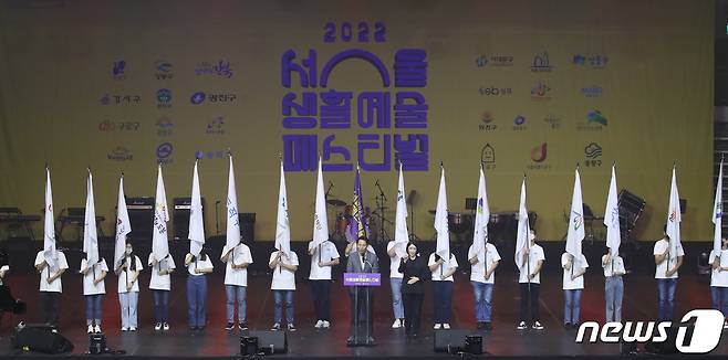 (서울=뉴스1) 송원영 기자 = 오세훈 서울시장이 3일 서울 중구 장충체육관에서 열린 제1회 서울생활예술페스티벌 개막식에서 환영사를 하고 있다. 2022.10.3/뉴스1