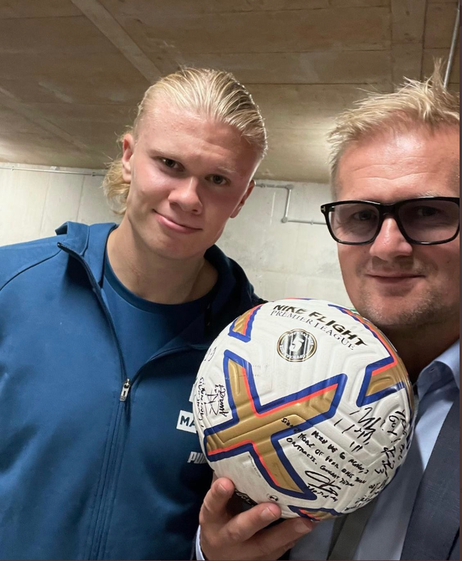 홀란드는 해트트릭을 작성한 후 매치볼을 챙겼는데, 곧바로 부친인 알프잉에 홀란드와 다정한 인증샷을 남겼다.