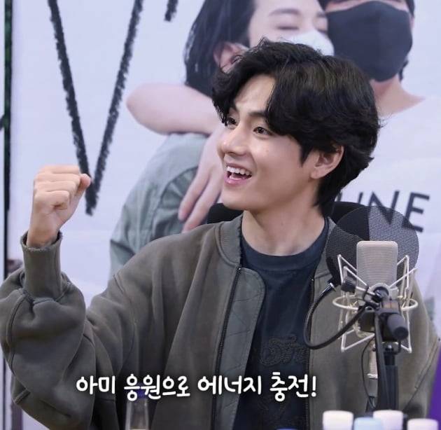 방탄소년단 뷔, 별밤지기 비하인드 영상..'아미 응원으로 에너지 충전'