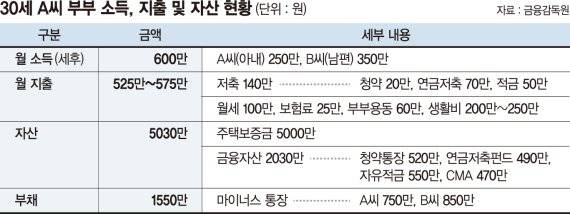 금감원 관계자는 "목표 우선순위를 정해 1~2년 내 준비할 자금 마련 비중을 늘리고 10~20년 중장기 자금 비중을 조정하면 된다"며 "마이너스통장은 변동금리로 매월 오르고 있으므로 올해 말까지 상환하고 출산 대비 자금도 미리 준비해야 한다"고 말했다.