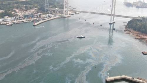해경은 현장에서 검은 유막이 5~6㎞ 해상에 걸쳐 넓게 분포된 것을 확인하고 긴급 방제를 시작했다.