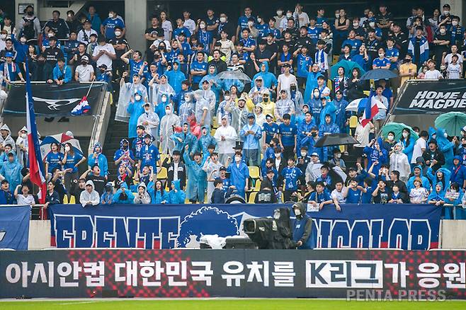 [ 펜타프레스 - 2022/10/03 ] 경기장 광고판에 아시안컵 유치 응원 문구가 표시되고 있다.