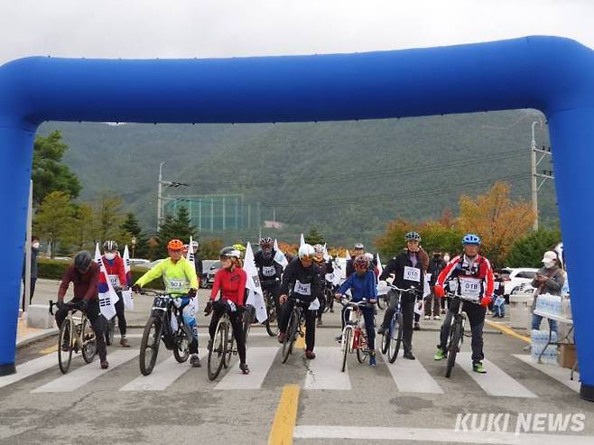 민주평화통일자문회의 강원 태백시협의회(회장 김동구)에서 3일 개천절을 맞이해 '2022년 평화통일 기원 자전거 대행진'을 개최하고 있는 가운데 태백문화예술회관 출발선에서 자전거 동호인과 지역주민, 자문 위원 등이 힘찬 출발을 하고 있다.