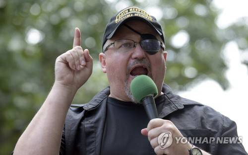 FILE - Stewart Rhodes, founder of the Oath Keepers, speaks during a rally outside the White House in Washington, June 25, 2017. Federal prosecutors are preparing to lay out their case against the founder of the Oath Keepers’ extremist group and four associates. They are charged in the most serious case to reach trial yet in the Jan. 6, 2021, U.S. Capitol attack. Opening statements are expected Monday in Washington’s federal court in the trial of Stewart Rhodes and others charged with seditious conspiracy. (AP Photo/Susan Walsh, File) FILE PHOTO