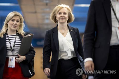 epa10221150 British Prime Minister Liz Truss (R) arrives for the Conservative Party Conference in Birmingham, Britain, 03 October 2022. The government announced a U-turn on scrapping the 45p tax rate, which is paid by people earning over 150,000 British pound (171,080.80 euro) a year, following a week of market turmoil and the British pound going historic low against the US dollar. EPA/TOLGA AKMEN