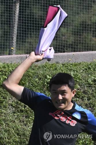 epa10221138 Napoli's defender Min-Jae Kim participates in a training session at the 'Konami training center' in Castel Volturno, Caserta, south Italy, 03 October 2022. Napoli will face Ajax in their first leg match for group A of the Champions League on 04 October. EPA/CIRO FUSCO